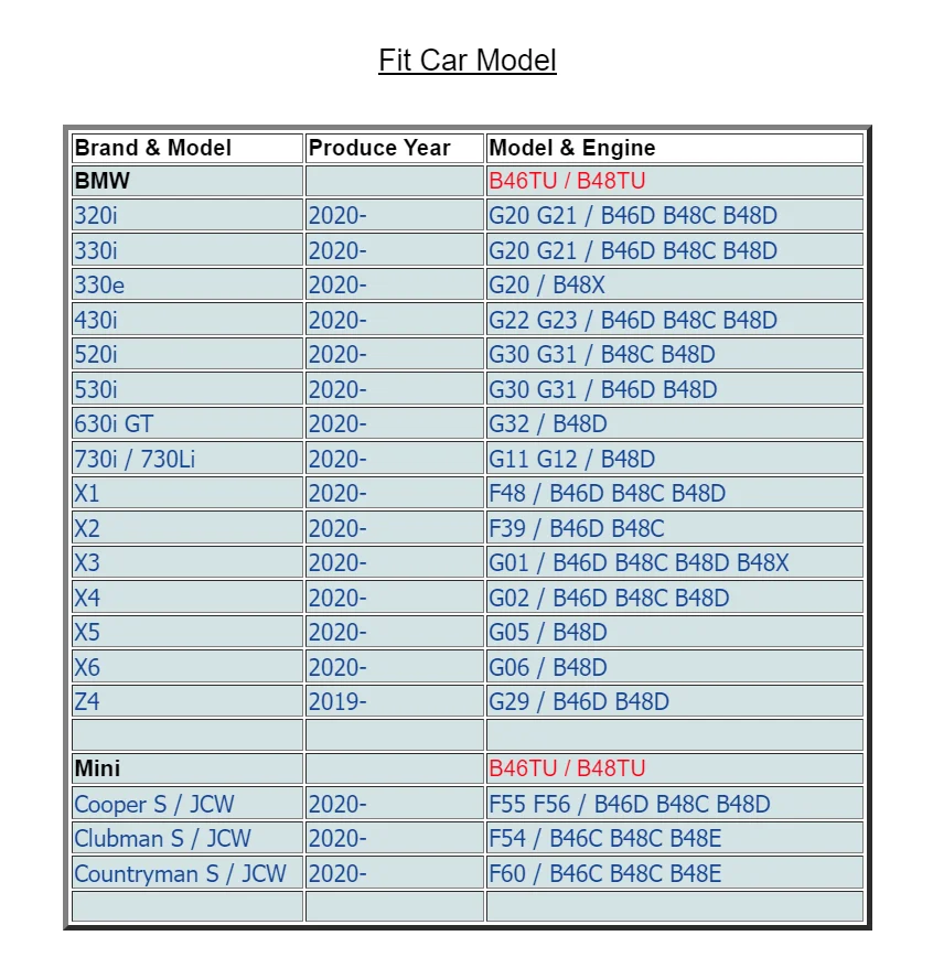 - Fit B46TU B48TU 2.0 Turbocharged (1998CC)