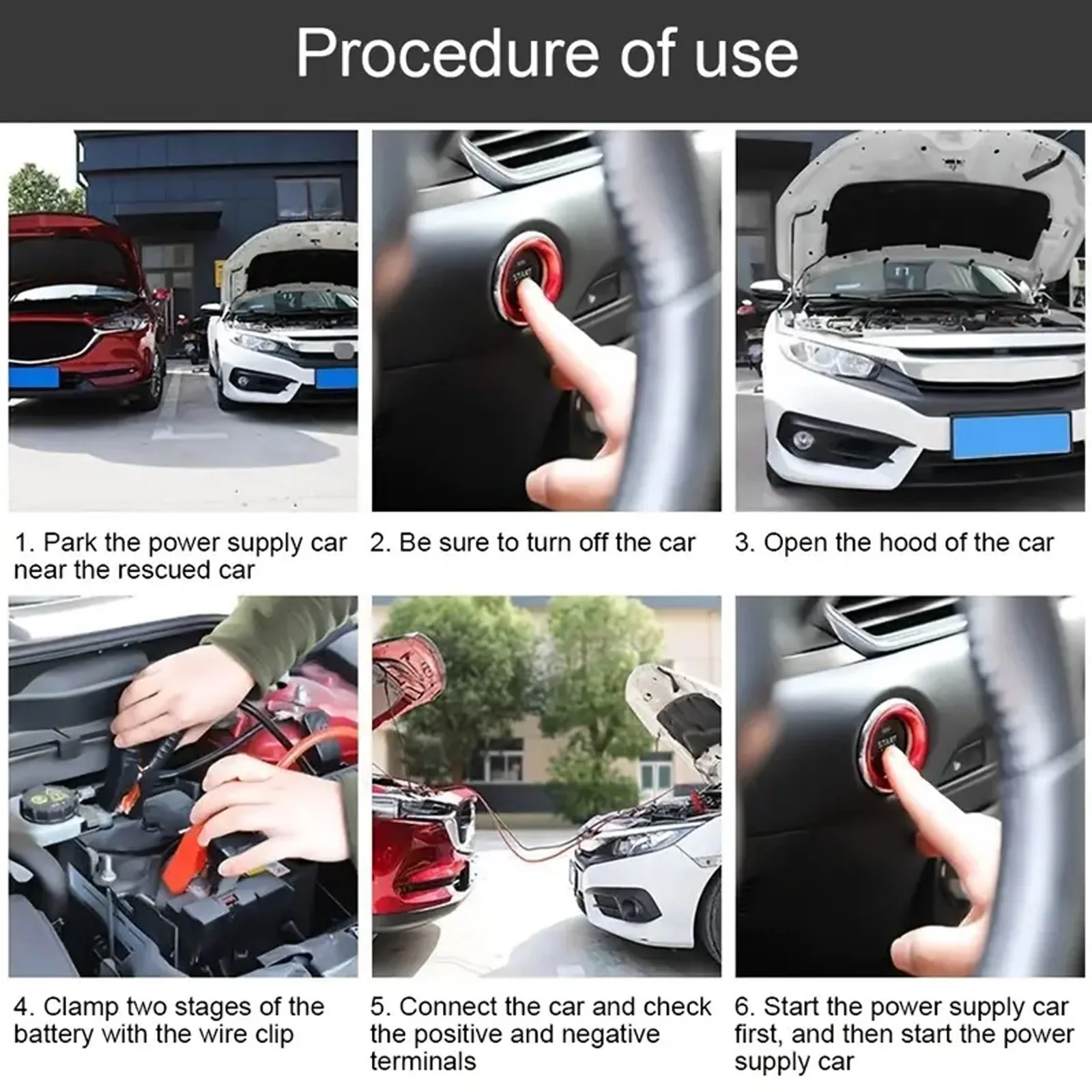 (5) Start the engine of the "rescue car" first, and then start the engine of the "rescue car". If it is found that the rescued vehicle still cannot be started, please check if the metal contact part is in poor contact.
