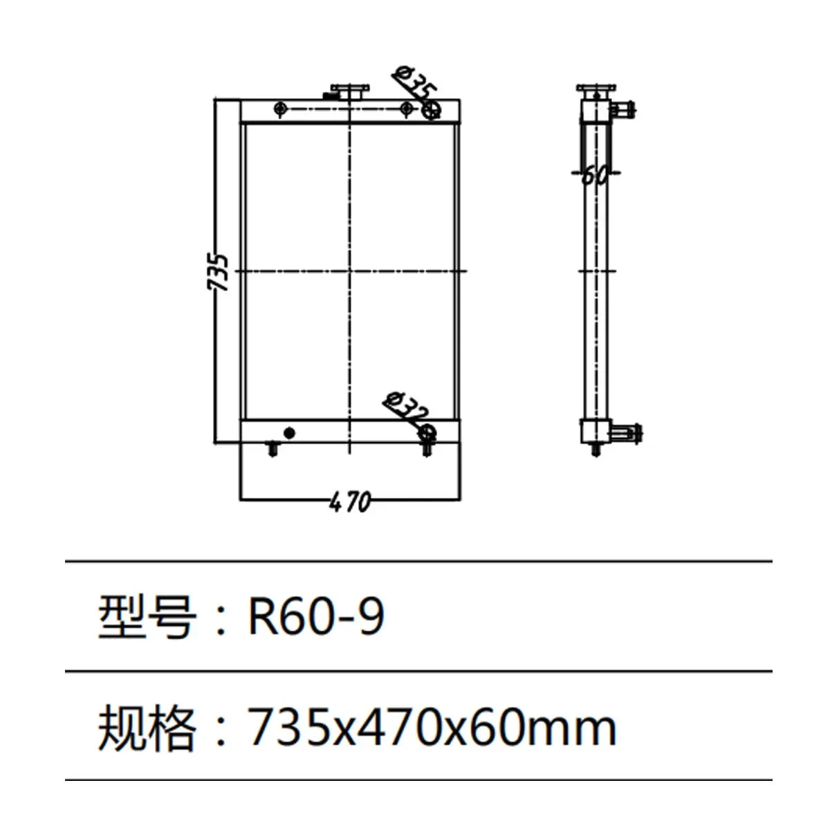 Water Tank Radiator for Hyundai Excavator R60-9