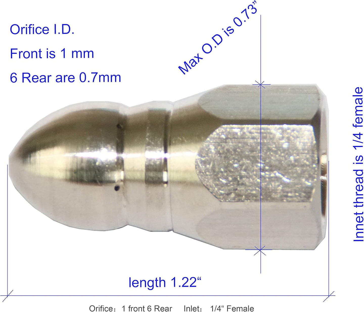 4000 PSI Stainless Steel Button Nose 1/4" Female Sewer Jetter Nozzle